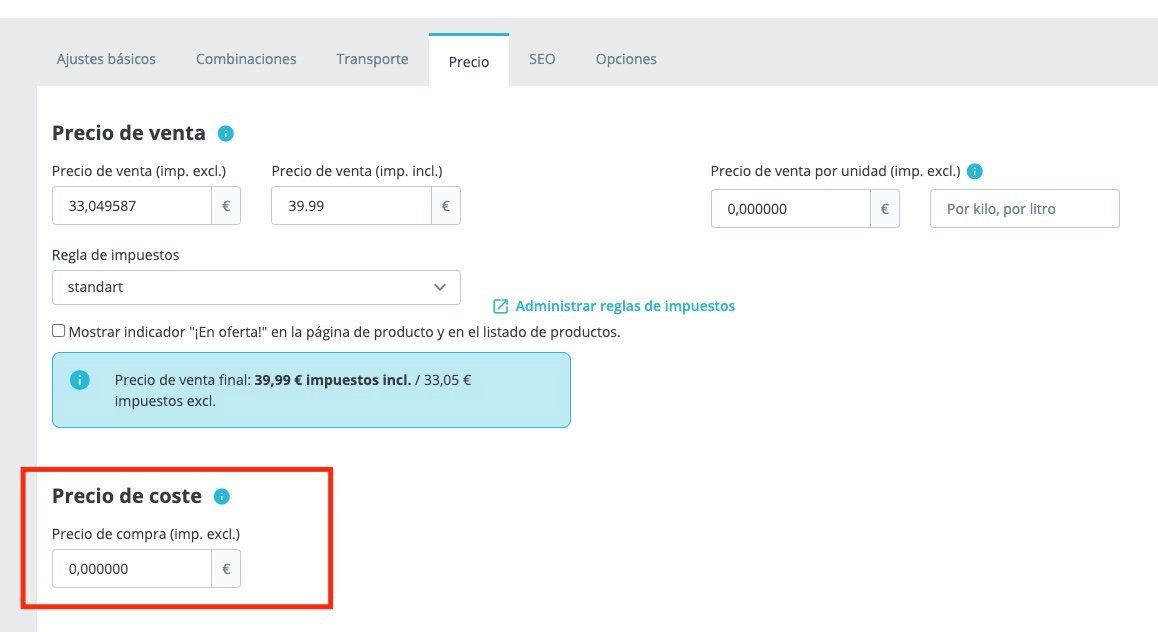 angelvicedo Posted December 8, 2022 Share Posted December 8, 2022 Hola, sabéis sí es posible cambiar el tipo de IVA al precio de coste del producto? He rebuscado por Google y no encuentro nada al respecto. En una tienda que tengo, el tipo de IVA del producto cuando compro no es siempre el 21%. Gracias de antemano. Link to comment Share on other sites More sharing options...