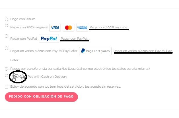 Javier GF Posted December 14, 2022 Share Posted December 14, 2022 Al llegar a la pantalla para elegir la opción de pago aparecen algunos métodos con la frase duplicada. Quisiera saber cómo quitar o modificar la que está subrayada (ver imagen). También quisiera saber cómo incluir un logo a Bizum y Transferencia. Así como poner el de Contra Reembolso detrás, y que aparezca esta opción en español. Link to comment Share on other sites More sharing options...