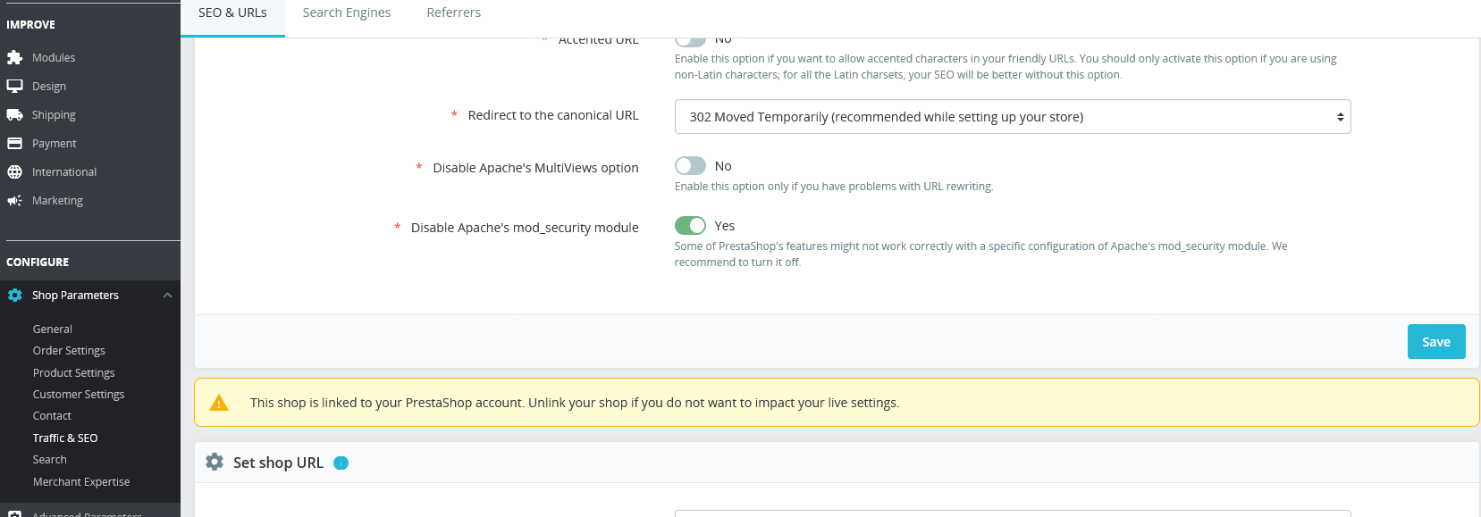 Tienda24 Posted December 16, 2022 Share Posted December 16, 2022 Dieser Shop ist mit Ihrem PrestaShop Account verknüpft. Heben Sie die Verknüpfung Ihres Shops auf, wenn Sie Ihre Live-Einstellungen nicht beeinträchtigen möchten. Hallo, diese Nachricht wird mir angezeigt zwischen url einstelllungen und Shop-URL festlegen. Kann mir jemand mitteilen wo ich dies bitte erledigen kann? Finde es einfach nicht. Vielen Dank Link to comment Share on other sites More sharing options...