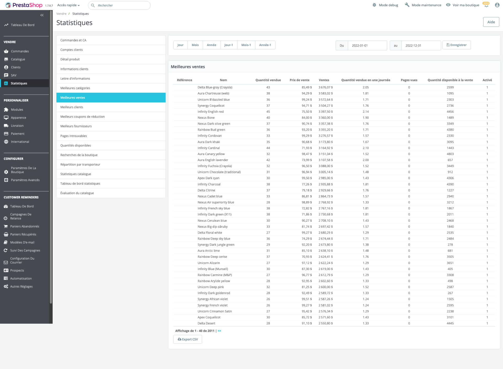 Mediacom87 Posted December 29, 2022 Share Posted December 29, 2022 Bonjour, Dans la page Statistiques, Meilleures ventes en définissant la période sur l'année. 1 Link to comment Share on other sites More sharing options...