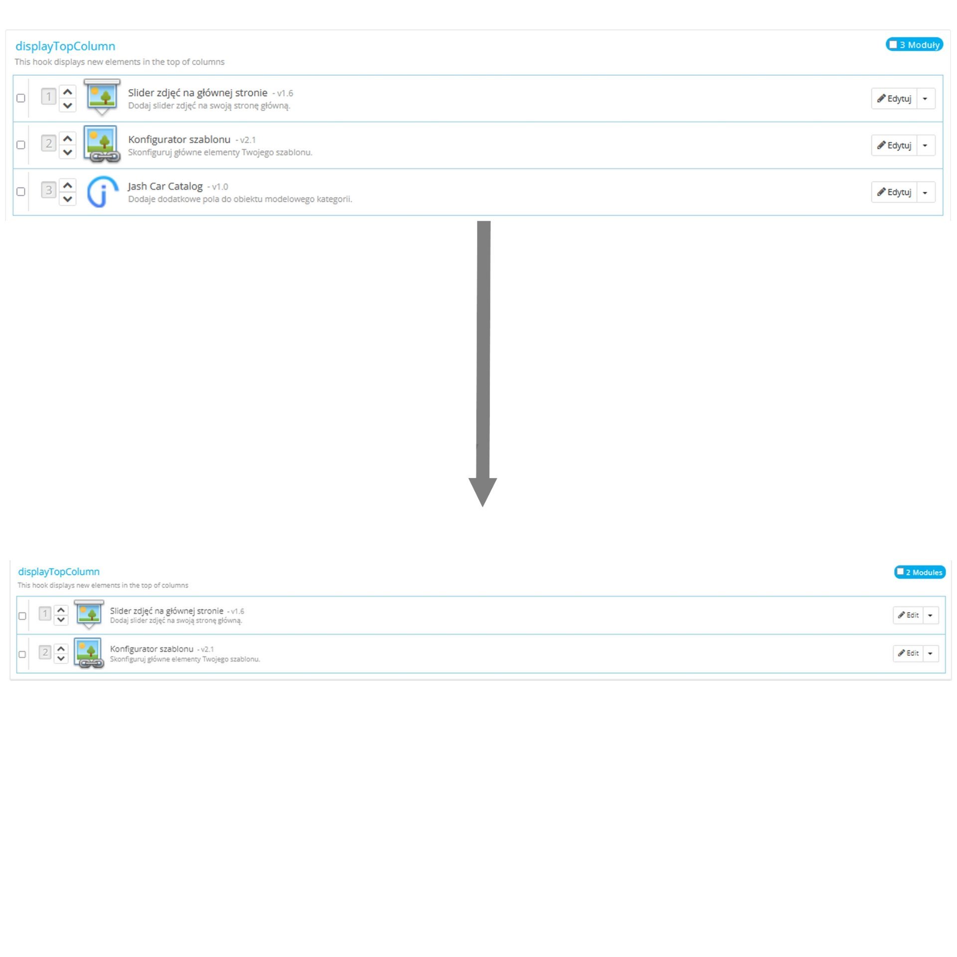 Po wyłączeniu i włączeniu modułu jash car catalog, już nie pojawił się na stronie, wiecie może który plik podmienić albo co zrobić?