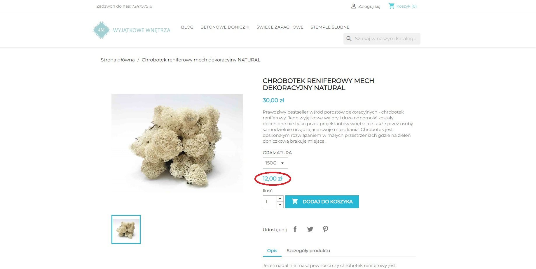 Mam problem z tym, że po zmianie gramatury produktu zmienia się górna cena automatycznie, a dolna pozostaje jak z poprzedniego wyboru i dopiero po odświeżeniu ceny zmienia się na właściwą