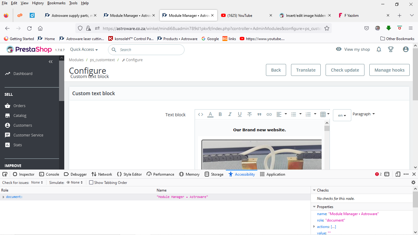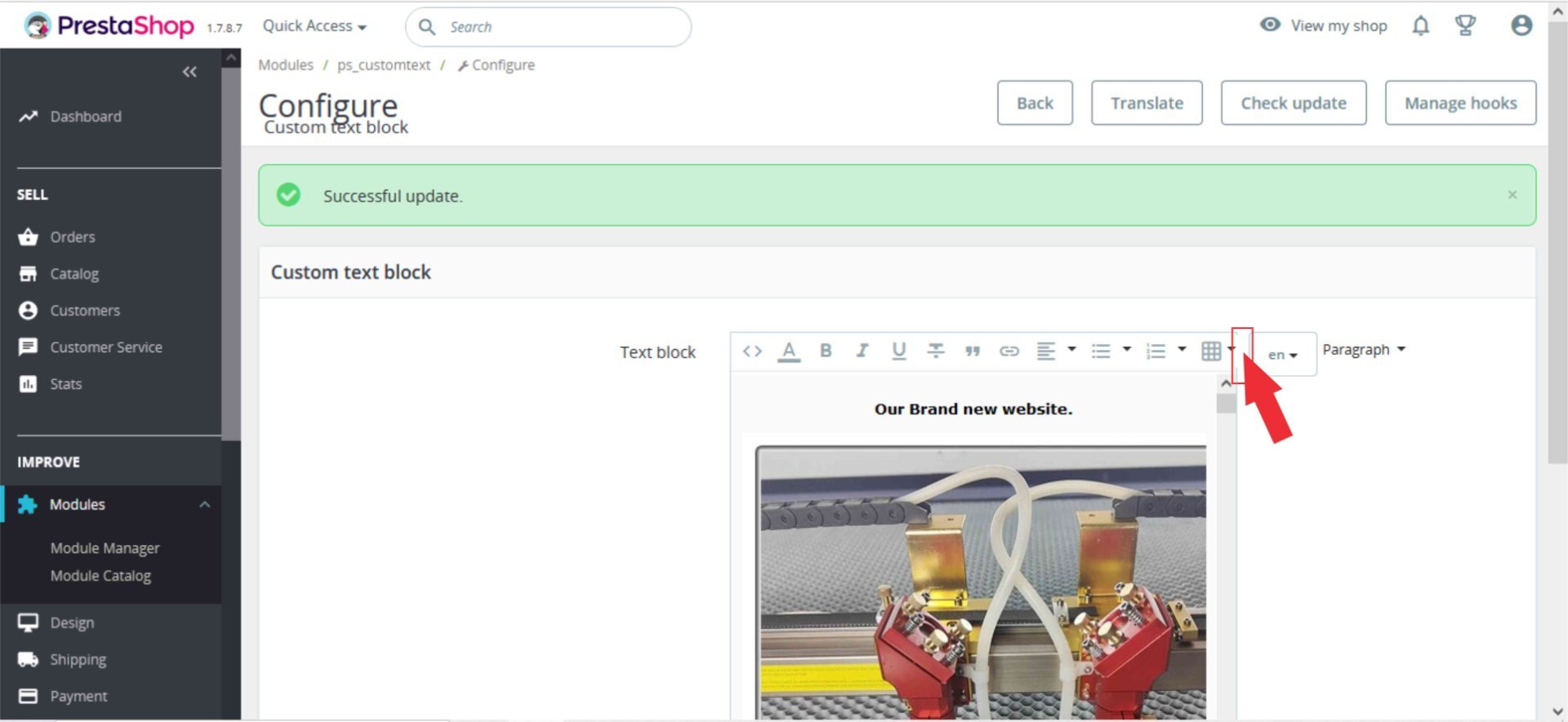 gerhardus Posted January 15, 2023 Share Posted January 15, 2023 Insert/edit image hidden behind "en" block in "Custom text block" in Modules.Please if someone can help, i am running ver: 1.7.8.7 This screen is very narrow. Recon I was just lucy to find the edge of the insert/edit image button. see image with red arrow below. Link to comment Share on other sites More sharing options...