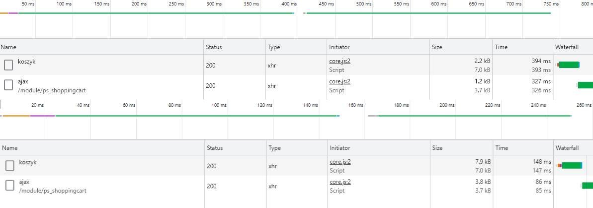 I tested clean new version of prestashop and same on some servers they have response XHR / POST 150-200ms and on others 600-700ms.