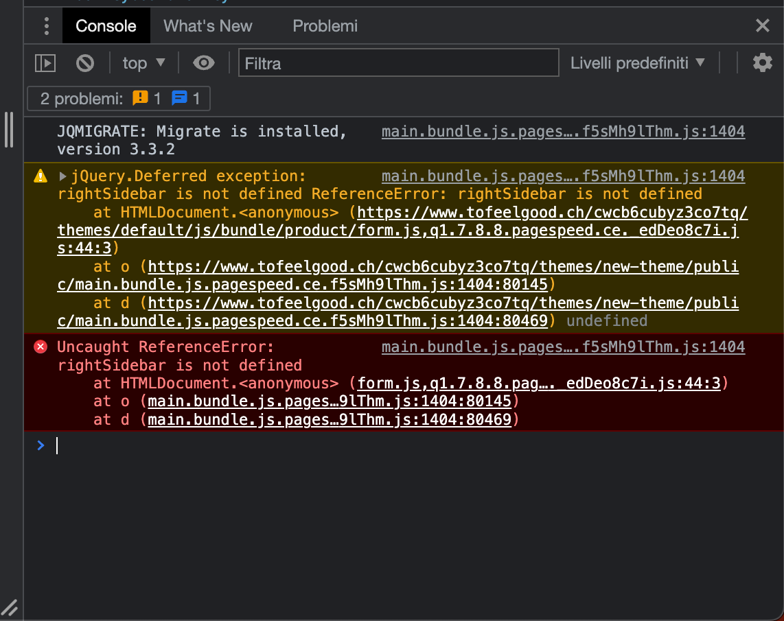 Robin_CH Posted January 20, 2023 Author Share Posted January 20, 2023 11 minutes ago, ziobudda said: Ciao, apri la console degli sviluppatori del browser e controlla se hai errori di JS. M. Link to comment Share on other sites More sharing options...