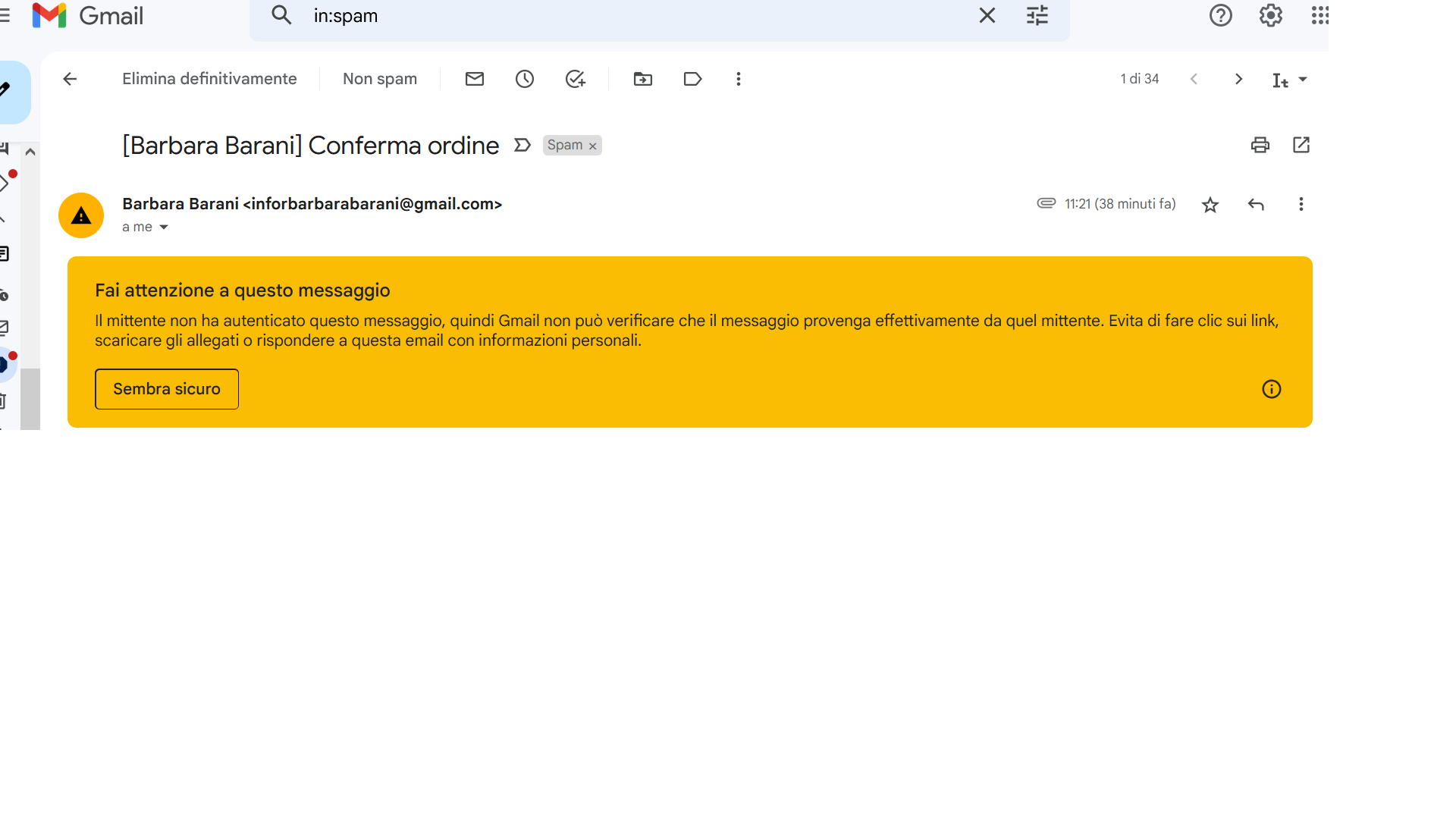 salvatore Posted January 26, 2023 Share Posted January 26, 2023 (edited) Salve, ho un problema con l'email di confermo ordine o comunicazione. Come posso risolvere questa scritta "Fai attenzione a questo messaggio Il mittente non ha autenticato questo messaggio, quindi Gmail non può verificare che il messaggio provenga effettivamente da quel mittente. Evita di fare clic sui link, scaricare gli allegati o rispondere a questa email con informazioni personali." La ricevo quando effettuo un ordine. Inoltre ho notato che l'indirizzo email è diverso , ovvero dovrebbe essere "[email protected]" e non con la "r" ovvero "[email protected]" Edited January 26, 2023 by salvatore (see edit history) Link to comment Share on other sites More sharing options...