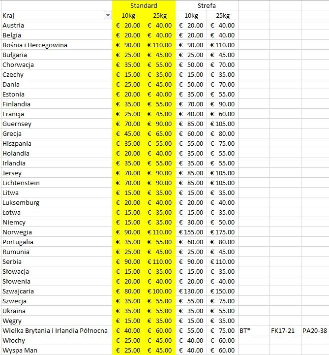 Problem pojawia się w białej sekcji STREFA - tam, w zależności od kraju i kodu pocztowego cena dostawy będzie inna.