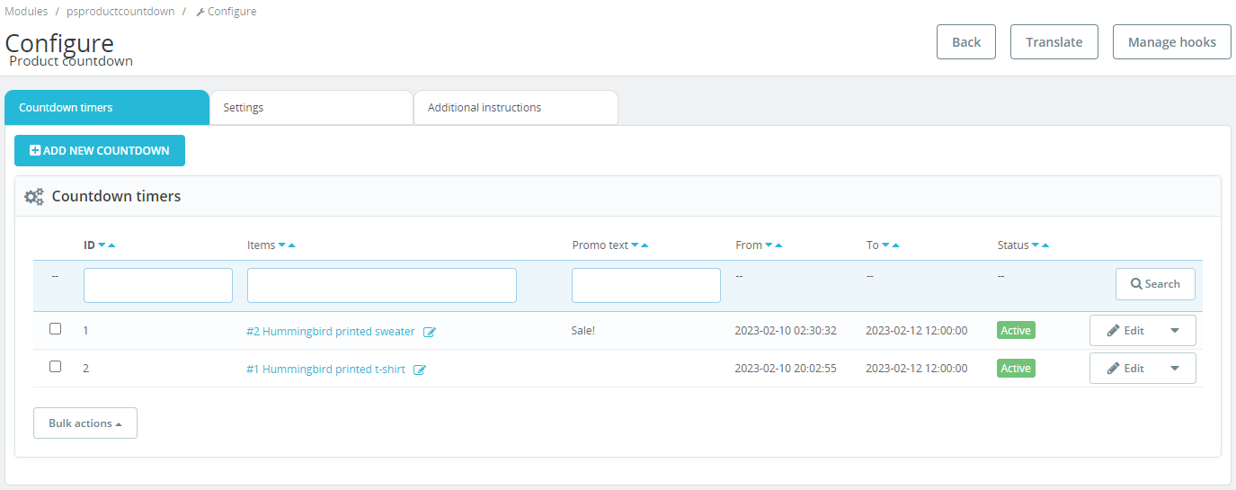Timers can be displayed in the product list and on the product page.