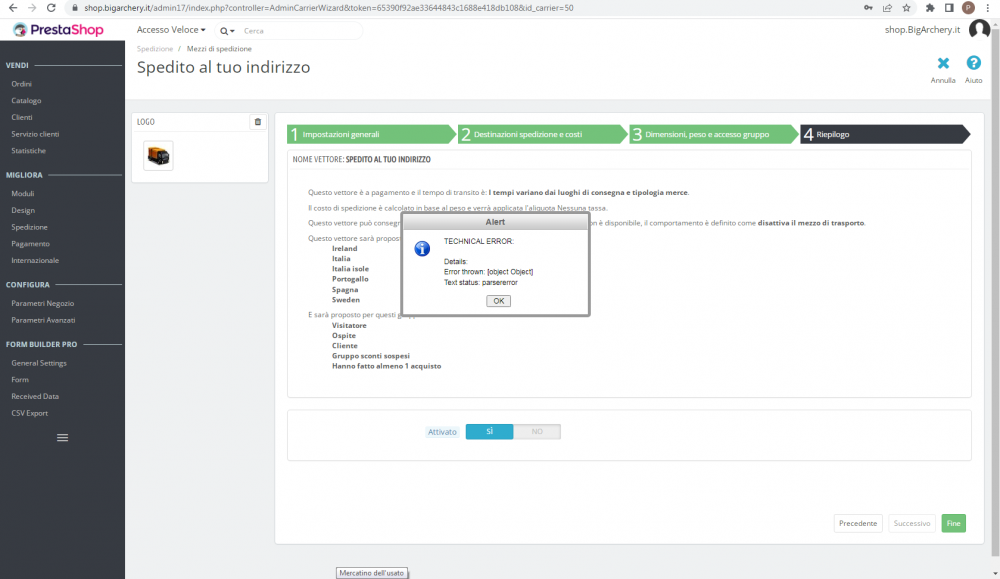 paulapauliyais Posted March 9, 2023 Share Posted March 9, 2023 Buenos días, no sé por cuál motivo, una vez que meto el peso y los precios de envío, en el último paso, me sale este error y no me guarda nada de lo que he puesto. Muchas gracias. Link to comment Share on other sites More sharing options...