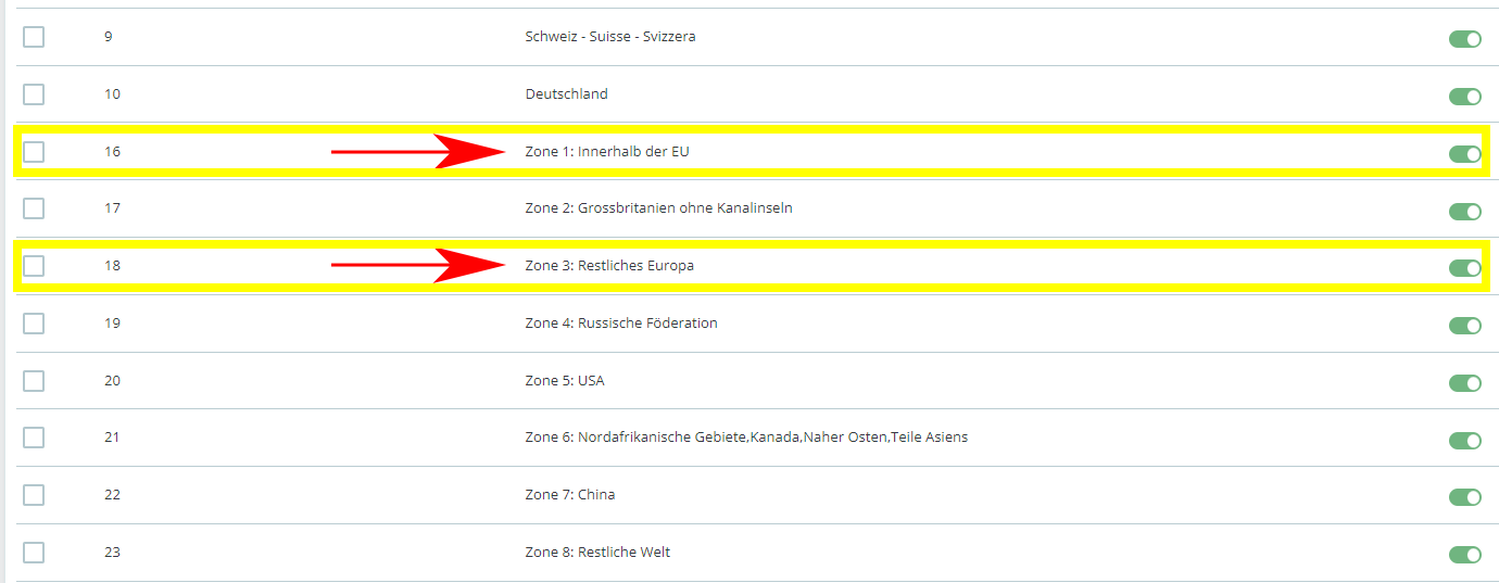 Unter dem Reiter «Bundesländer» habe ich die Gebiete den Zonen zugeordnet: