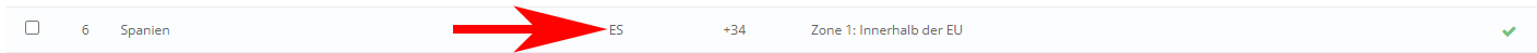 Unter dem Reiter «Länder» habe ich das Land «Spanien» der Zone zugeordnet: