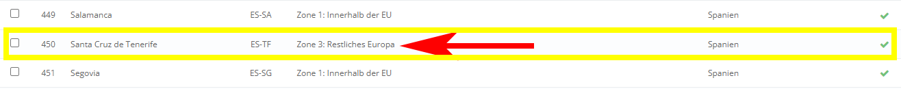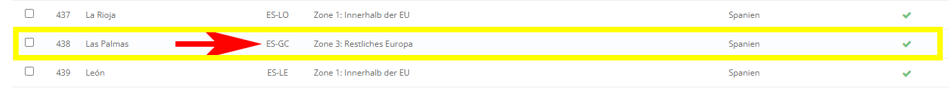 Wie Sie sehen, die Bundesländer «Santa Cruz de Tenerife» und «Las Palmas» der Zone 3 zugewiesen.
