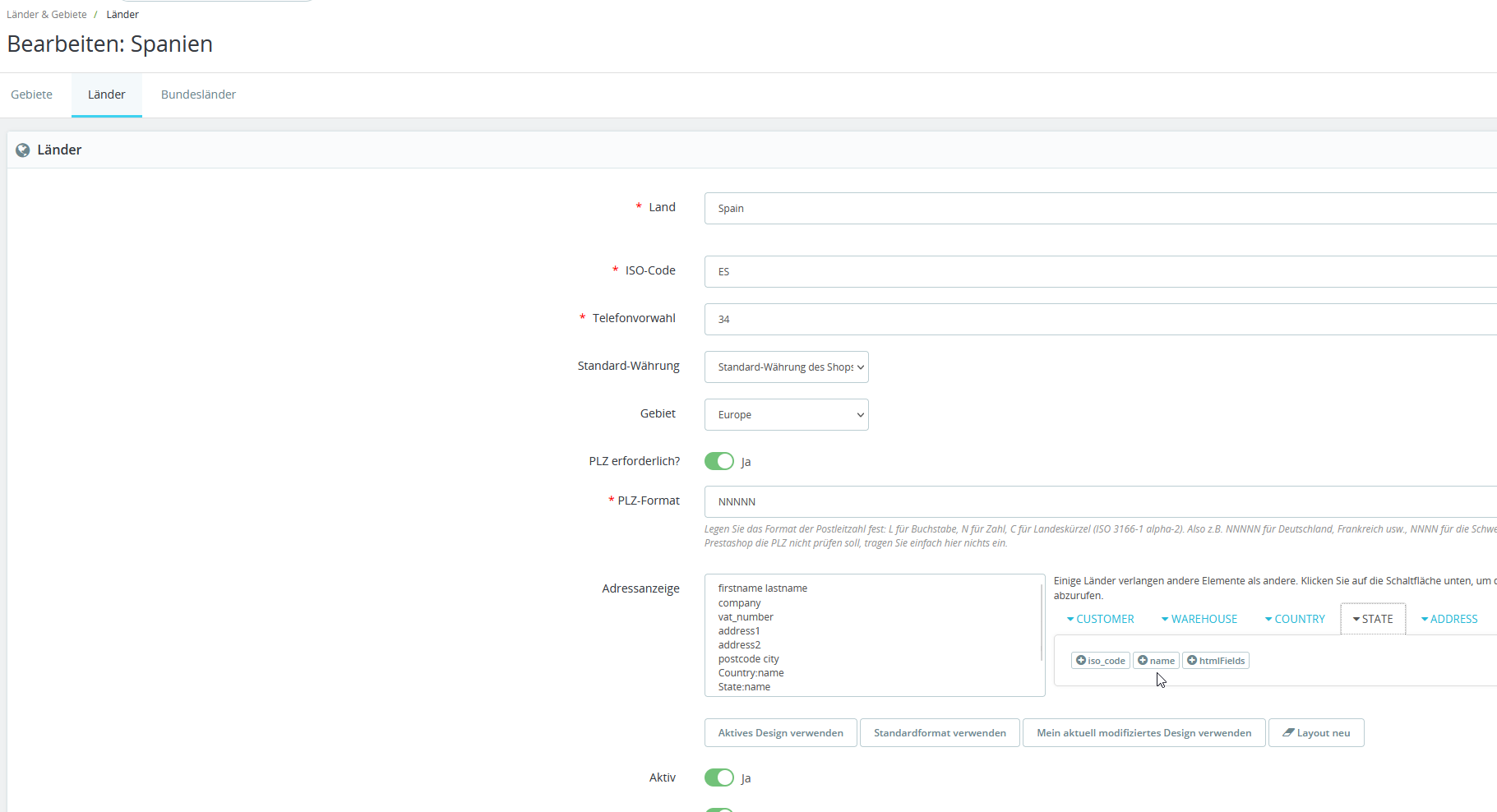 Wie ich gesehen haben, kann ich im PrestaShop unter «International/Länder&Gebiete» Einstellungen vornehmen.