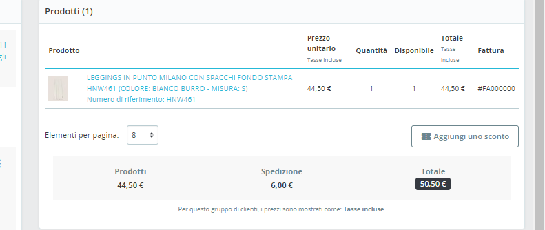daninapoli Posted March 21, 2023 Author Share Posted March 21, 2023 scusami il file orderdetail.tlp $this->product_id = (int) $product['id_product']; $this->product_attribute_id = $product['id_product_attribute'] ? (int) $product['id_product_attribute'] : 0; $this->id_customization = $product['id_customization'] ? (int) $product['id_customization'] : 0; $this->product_name = $product['name'] . ((isset($product['attributes']) && $product['attributes'] != null) ? ' (' . $product['attributes'] . ')' : ''); $this->product_quantity = (int) $product['cart_quantity']; $this->product_ean13 = empty($product['ean13']) ? null : pSQL($product['ean13']); $this->product_isbn = empty($product['isbn']) ? null : pSQL($product['isbn']); $this->product_upc = empty($product['upc']) ? null : pSQL($product['upc']); $this->product_mpn = empty($product['mpn']) ? null : pSQL($product['mpn']); $this->product_reference = empty($product['reference']) ? null : pSQL($product['reference']); scrive quella griglia di dettaglio ? Link to comment Share on other sites More sharing options...