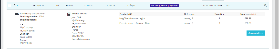 daninapoli Posted March 27, 2023 Author Share Posted March 27, 2023 Essendo inesperto nel creare un modulo, sono riuscita in questo momento ad avere le aggiunte che mi interessavano modificando il codice dove mi serviva, esattamente ho modificato: product.html.twig ( src\PrestaShopBundle\Resources\views\Admin\Sell\Order\Order\Blocks\View ) OrderProductForViewing.php ( src\core\domain\order\queryresult) GetOrderProductsForViewingHandler.php( src\adpter\order\quesryhandler) Sicuramente non è la soluzione giusta. Proverò a creare un modulo appena ho un attimo, seguendo le guide o qualche tutorial. (anzi se qualcuno indica qualche link sarebbe ). Intanto saluti. Spero di aggiornare il post con il modulo a corredo se dovesse servire a qualcuno. Link to comment Share on other sites More sharing options...