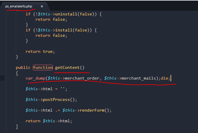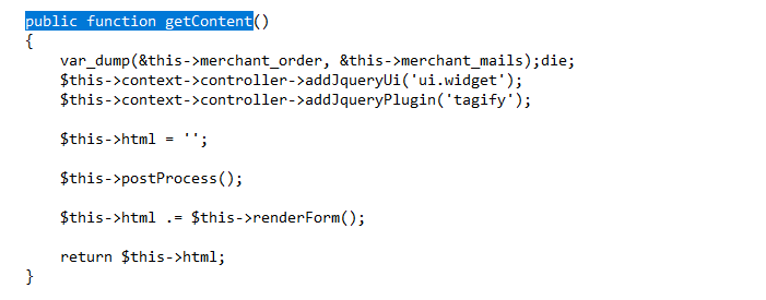 FactoryBike Posted March 28, 2023 Author Share Posted March 28, 2023 (edited) 11 minutes ago, ExpertoPrestaShop said: Amigo, es que estas escribiendo mal el código que te envié. Te lo mando en texto a ver si te funciona: var_dump($this->merchant_order, $this->merchant_mails);die; Luego de probarlo, puedes restaurar todo a como estaba antes. Que desastre soy....te pido disculpas...no veía la diferencia. Ahora si pude cambiar el código y al entrar en el módulo me sale esto: Edited March 28, 2023 by FactoryBike (see edit history) Link to comment Share on other sites More sharing options...