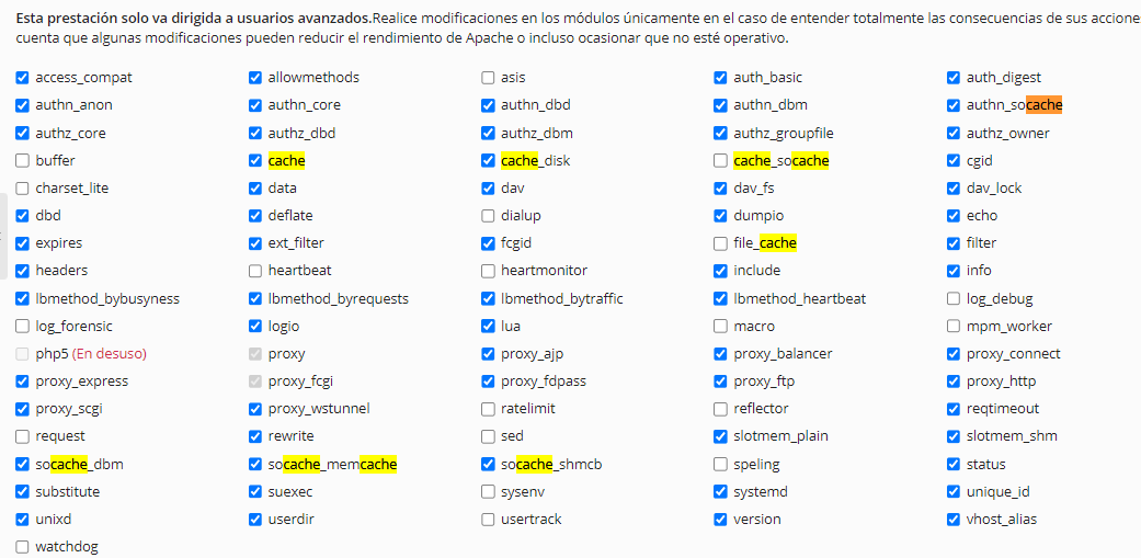 FactoryBike Posted March 28, 2023 Author Share Posted March 28, 2023 11 minutes ago, ExpertoPrestaShop said: La implementación del envío de notificación por nuevos pedidos no tiene relación alguna con el resto de las funciones del modulo. Puede haber un bug específicamente en esa función. Lo que comentas sobre la configuración del módulo que se mantiene luego de resetearlo realmente no le encuentro sentido. Tampoco usas ningún sistema de cache como OPcache o Memcached etc etc? Dentro de la configuración del servidor apache tengo todo ésto: Link to comment Share on other sites More sharing options...