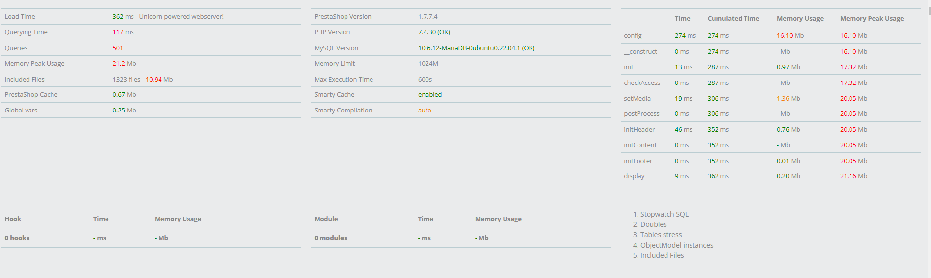 Postaraj się też ograniczyć liczbę modułów bo niezbędnego minimum żeby ograniczyć liczbę zapytań do bazy. Zobacz też w error_log php