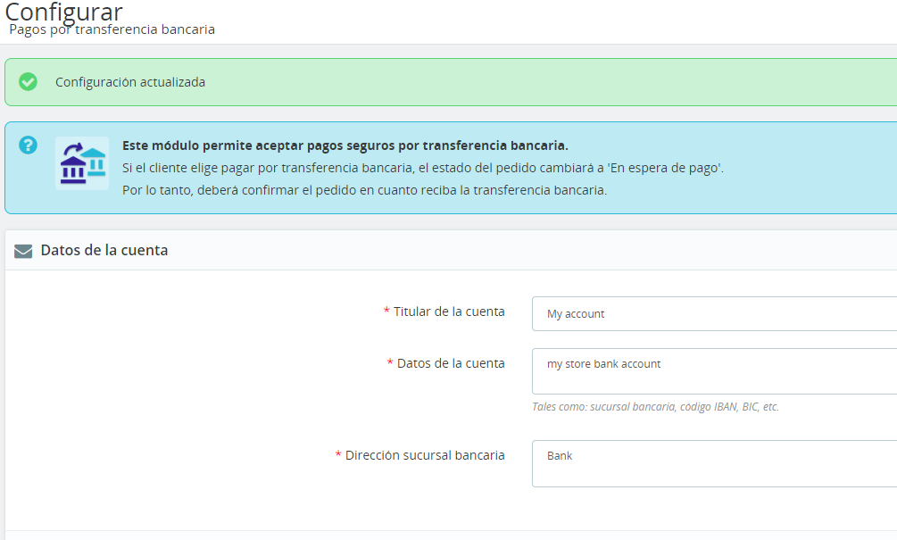dehache Posted April 17, 2023 Author Share Posted April 17, 2023 2 hours ago, TiaNex Shopping said: you need to clear the cache, the tmp file in modules/bankwire/views/front or hook, and the same postion in the current theme Thanks, I did it already, and it doesnt work... It is weird, because after the checkout process the email the site send has the right bank info. Is only in the checkout process. I even reset the bankwire module Link to comment Share on other sites More sharing options...