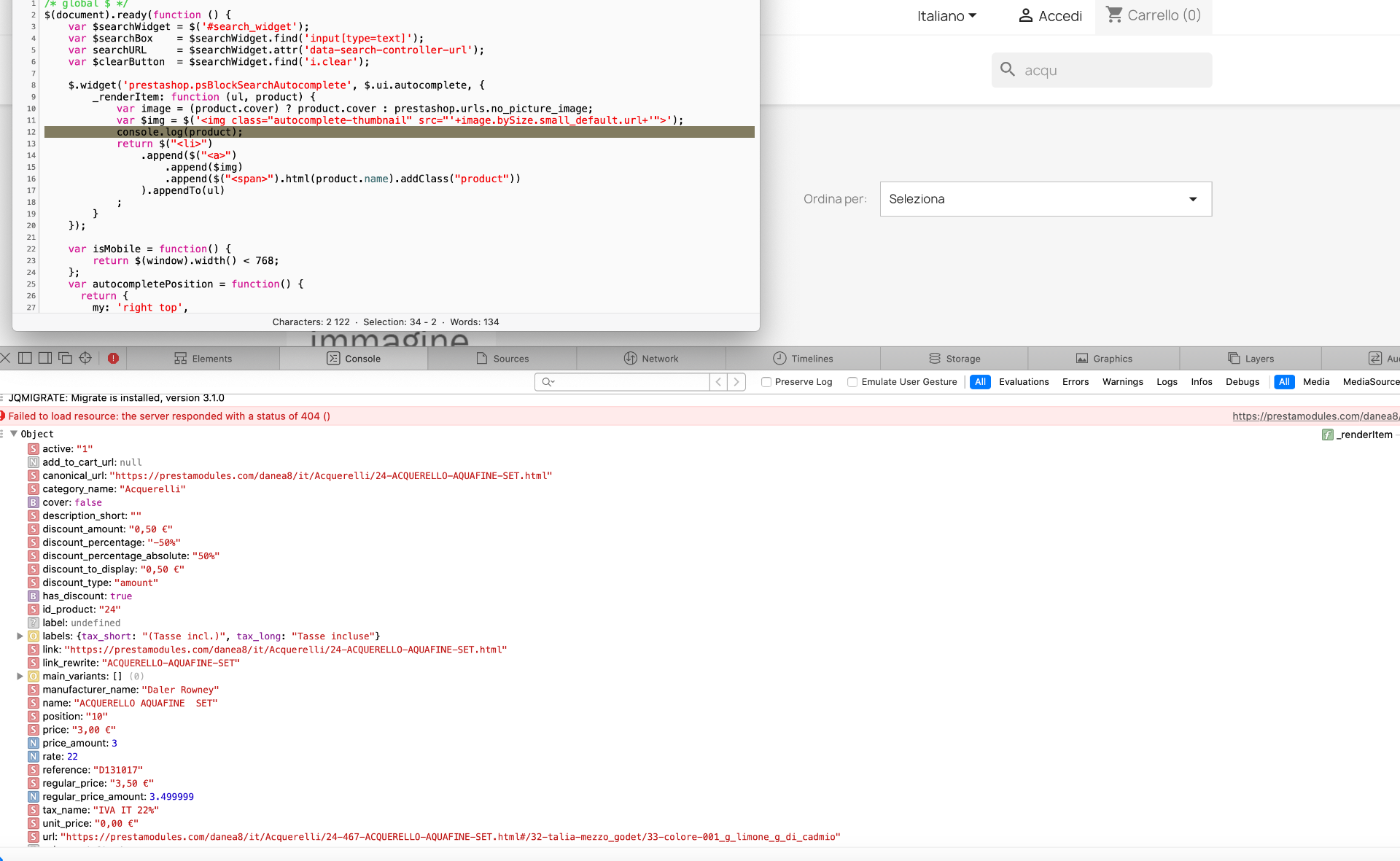 visualizzare quantità disponibile in barra ricerca