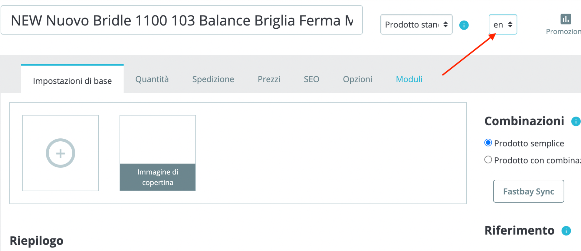 Mi ritrovo che nel mio backoffice, nella sezione prodotto, quando passo da italiano ad inglese non succede nulla.