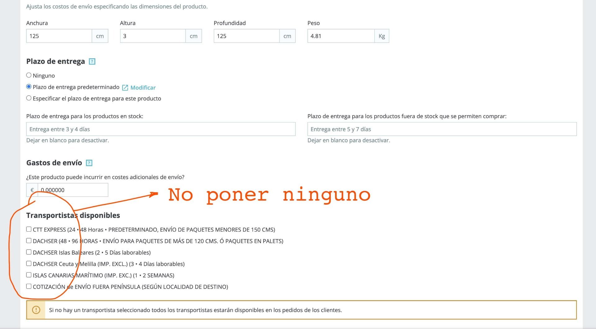 gusman126 Posted April 27, 2023 Share Posted April 27, 2023 Sobre el transporte gratuito, donde tienes el límite de euros? En preferencias de transporte. No lo configures ahí, configura el transporte gratuito dentro de cada transporte, si estás utilizando coste por Kg entonces no puedes, ahí necesitas un módulo de transporte gratuito por transporte , creo que línea gráfica tiene uno. Si los transportes tienes coste por total del carrito, configura los rangos. Nunca se recomienda configurar transporte gratis en preferencias, porque entonces enviar fuera de la península siempre será gratis a partir de 90€ , por ejemplo a Canarias y Baleares. Link to comment Share on other sites More sharing options...
