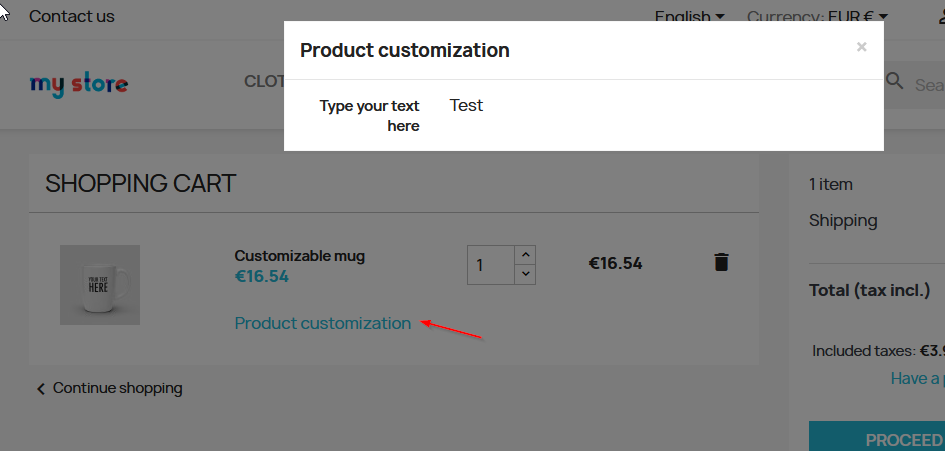 jr.villaron Posted May 3, 2023 Share Posted May 3, 2023 Hi everyone, As usual I am unable to achieve what I thought it would have been an easy task in Prestashop. I would like to display customisation fields for every product in the cart detailed lines. I attach a screenshot to make myself better understood. Here is the code that i have taken from product.tpl {if $product.is_customizable && count($product.customizations.fields)} {block name='product_customization'} {include file="catalog/_partials/product-customization.tpl" customizations=$product.customizations} {/block} {/if} But when I paste it in cart-detailed.tpl nothing happens... Would it be possible to display the field somehow? Thank you in advance! Link to comment Share on other sites More sharing options...
