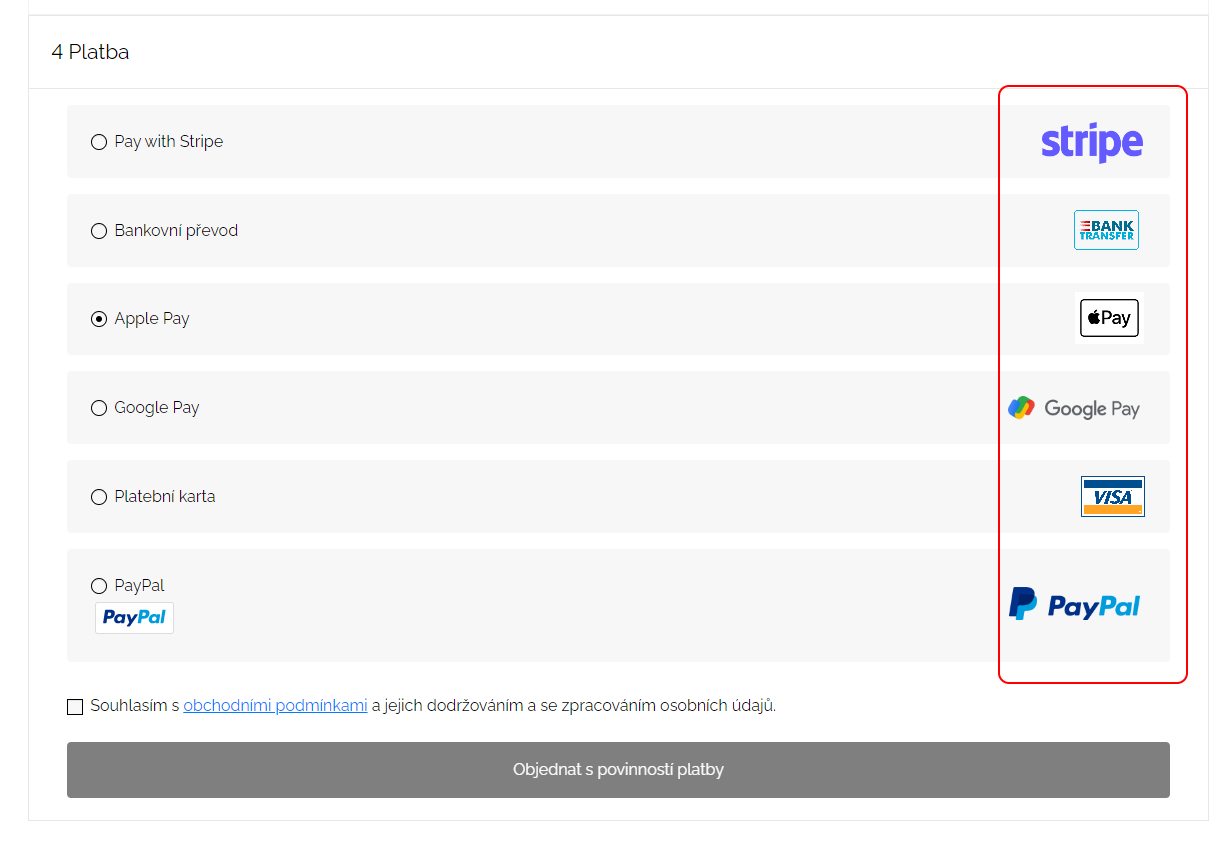 Holoweb Posted May 31, 2023 Share Posted May 31, 2023 Hello, i would like to ask for help with displaying logos with the payment option at the last step of an order. PS 1.7.8.1., warehouse theme In the step of an order, you get radio options for every payment (paypal, stripe, bankwire etc.) These are represented only in text, but i need a logo there, which are not present. Paypal is showing some logo, but from the repository, not even within a modul files. I search the code (payment.php) and i found that logo are ment to be there - code is there for it, there is just none showing or any method beside the PayPal. What i need to achieve is to produce logo of a payment method at the same line where the options radio is, as in the picture in attachment, marked in red. Thank you for your help and time! Regards from Czech, Hugo 1 Link to comment Share on other sites More sharing options...