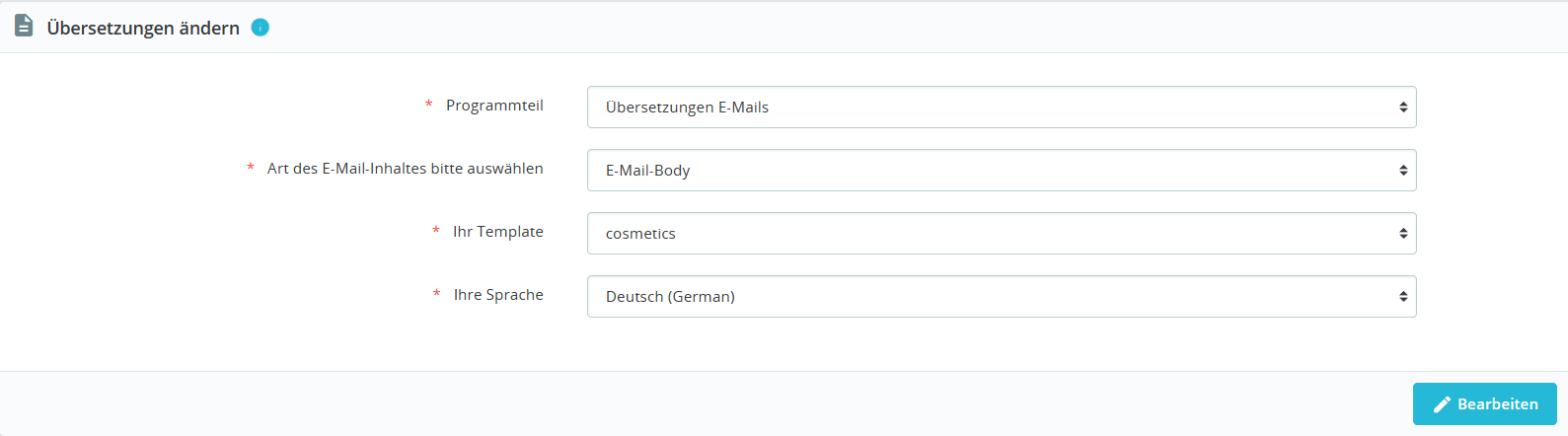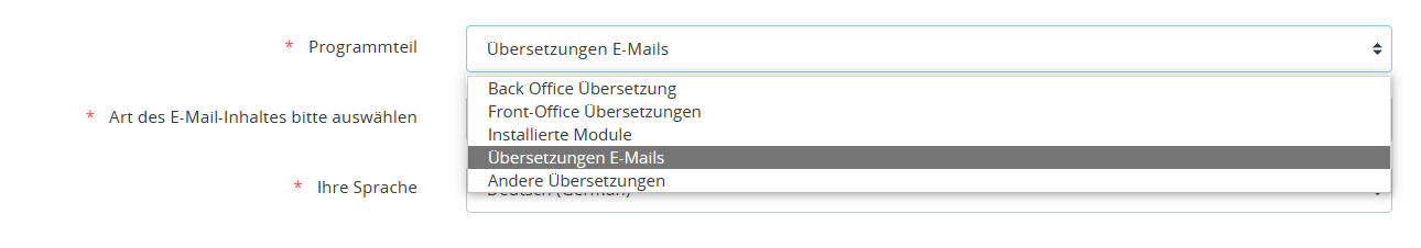 cbl Posted June 11, 2023 Author Share Posted June 11, 2023 Ja ich glaube da war es .... Übersetzung ändern, stimmts? Aber wenn ich da Übersetzung E-Mail wähle und Art Template, dann kommt Hoppla! Sieht aus, als ob ein unerwarteter Fehler aufgetreten ist [] operator not supported for strings [Symfony\Component\Debug\Exception\FatalThrowableError 0] Link to comment Share on other sites More sharing options...