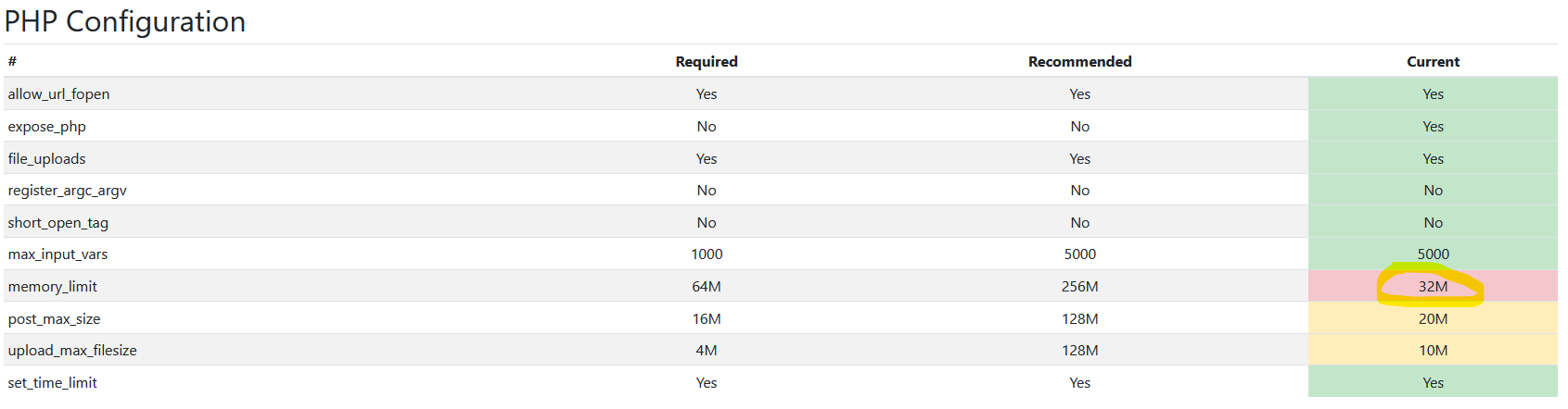 Nie mogę też zalogować się do panelu administracyjnego ze względu za zbyt niskie parametry memory_limit: