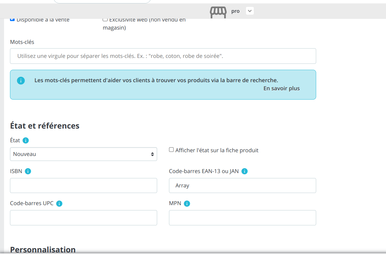 Guillaume_KS Posted June 14, 2023 Share Posted June 14, 2023 (edited) Hello, I have a small problem and I really do not see where it can come from. I imported my products a long time ago with their ean. Since then (I don't know what the cause is), my products have in the ean13 box spelled out: Array What's strange is that in the database, the eans are written correctly. If I go to my back office and change the ean box by hand, when I save, the word Array comes back. Has this ever happened to anyone? I'm multishop, and the error persists on all shops. Edited June 15, 2023 by Guillaume_KS (see edit history) Link to comment Share on other sites More sharing options...