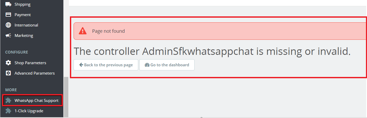 I have installed whatsapp module in prestashop but it was showing error so i deleted, still it shows in the menu and when i click it it shows the not found error.