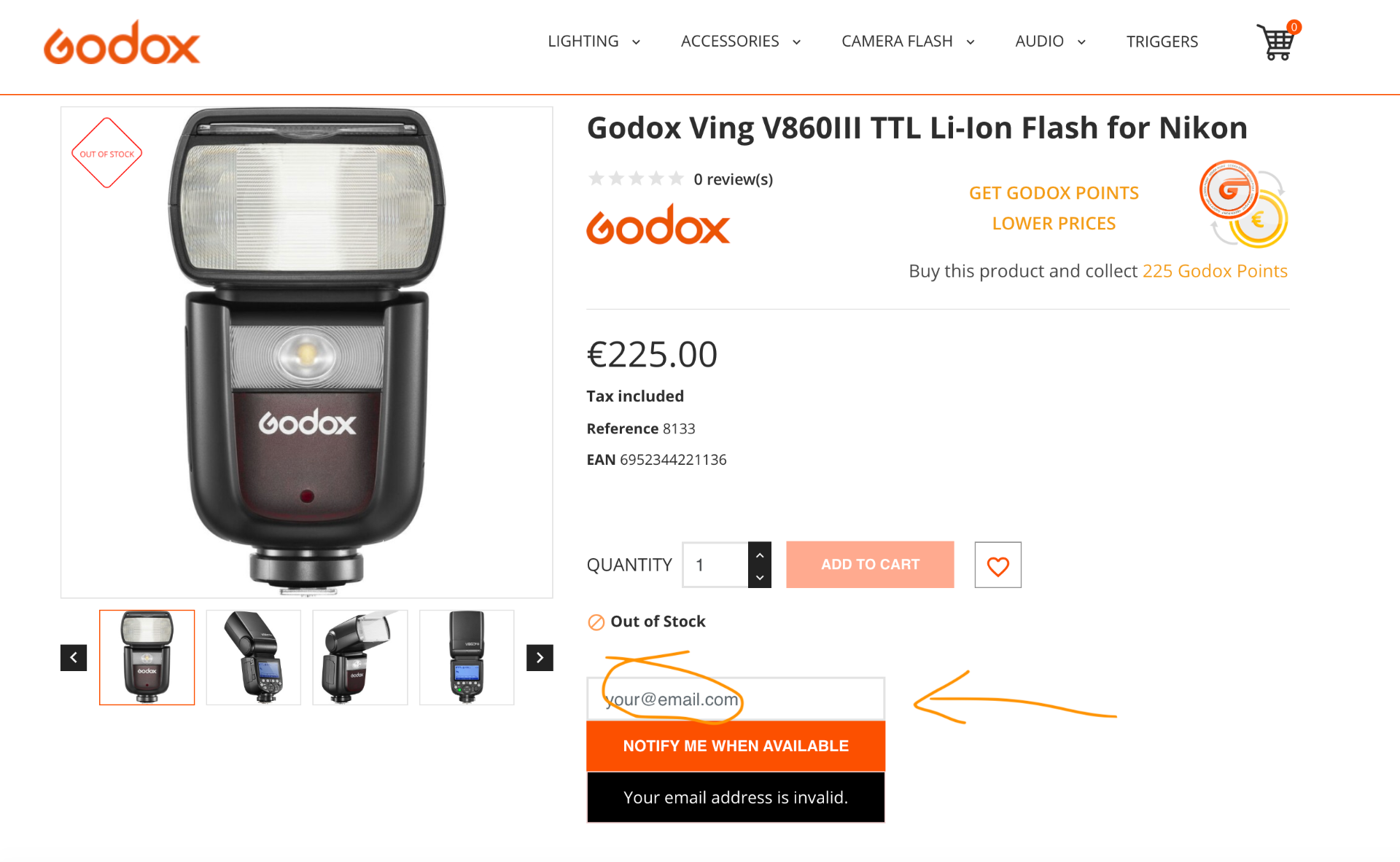 When we are Guest and we add e-mail address on checkout page, next we back to the product and click "Notify me when available", we got error "Your email address is invalid".