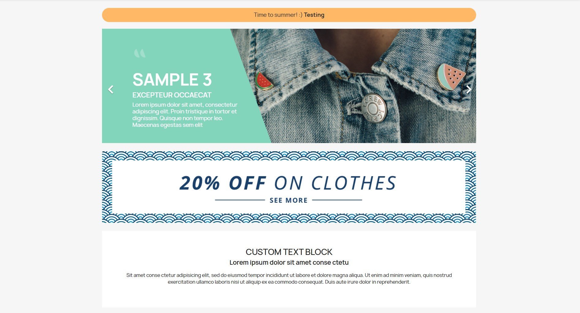 get3code Posted July 10, 2023 Share Posted July 10, 2023 (edited) Hello. I provide a free module informing about holidays, Christmas break or other situations in the store. works on PrestaShop 1.6 - 8.1 two language versions PL and EN HTML content editor Ability to set the background and color of the text Corners can be rounded Selection of the date when the module is to appear automatically and when to disable it Update 03/11/2023 - improved view for PrestaShop 8.1.2Update 29/11/2023 - extended ability to place information in several hooks and improved date validation myvacationinfo_1_0_2.zip Edited November 29, 2023 by get3code (see edit history) 1 Link to comment Share on other sites More sharing options...