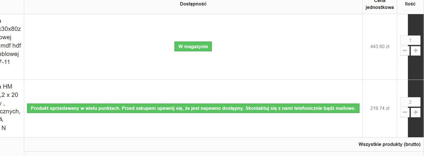 Witam szanowne grono. Mam problem z frazą potrzebną na stronie produktu. Zamiast w magazynie pojawia się informacja o kontakt w sprawie dostępności. O ile na stronie produktu ta informacja wygląda dobrze, to w koszyku rozwala mi stronę. Udało mi się ustalić która linijka w css za to odpowiada: