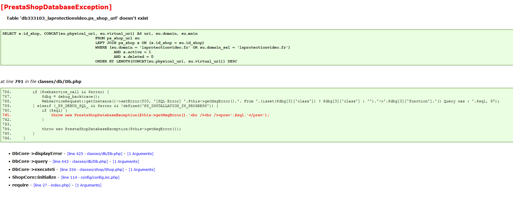 CELINEK Posted October 12, 2023 Author Share Posted October 12, 2023 bonjour ma version de mon prestashop est en 1.6, je viens de voir que mes tables ps_connections et ps_connections_pag étaient saturées, je viens de les vider mais je pense que ma basse de données est imcomplète, il manque une ligne, quand que je mets mon prestashop en mode debug, j'ai le message suivant (voir screeshot) Link to comment Share on other sites More sharing options...