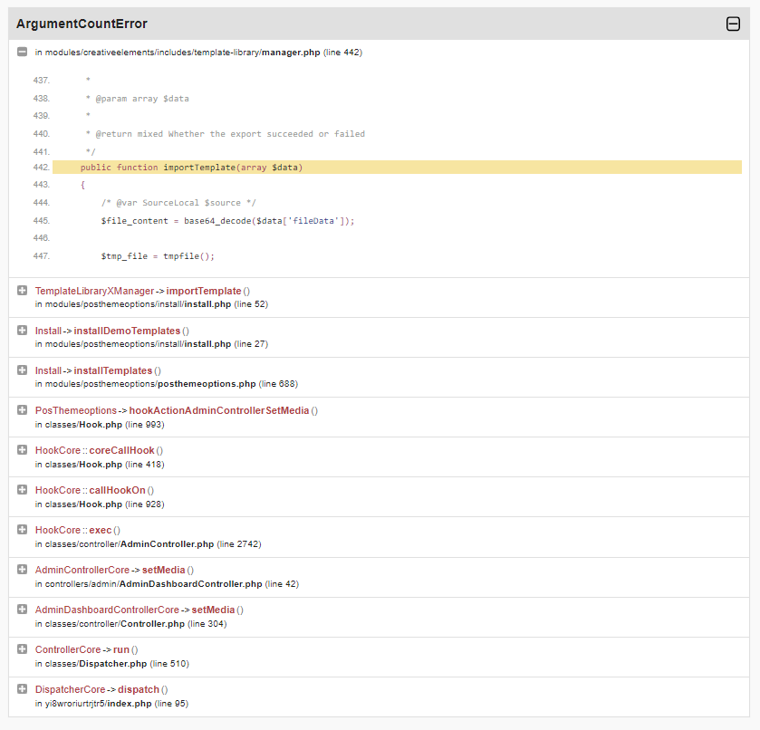 Santietsit Posted August 9, 2023 Share Posted August 9, 2023 Hi all, I am recently new to prestashop, and I have to say that the experience so far has been incredible. Spend some time working on the backoffice, and today I installed a paid theme (Ecolife Elementor), and just after I install it, the whole system crash, and I can't access the backend / frontend is completly frozen. This is the Log that I am getting, hope someone can give me any advice. LevelChannelMessage INFO16:53:01phpUser Deprecated: Since api-platform/core 2.7: The service "ApiPlatform\Core\Bridge\Symfony\Routing\IriConverter" is deprecated, use ApiPlatform\Symfony\Routing\IriConverter instead. { "exception": {} } CRITICAL16:53:01requestUncaught PHP Exception ArgumentCountError: "Too few arguments to function CE\TemplateLibraryXManager::importTemplate(), 0 passed in /homepages/23/d970233196/htdocs/patitas/modules/posthemeoptions/install/install.php on line 52 and exactly 1 expected" at /homepages/23/d970233196/htdocs/patitas/modules/creativeelements/includes/template-library/manager.php line 442 { "exception": {} } INFO16:53:01phpDeprecated: Optional parameter $id_lang declared before required parameter $limit is implicitly treated as a required parameter { "exception": {} } INFO16:53:01phpDeprecated: Optional parameter $id_lang declared before required parameter $tag_list is implicitly treated as a required parameter { "exception": {} } CRITICAL16:53:01phpUncaught Error: Too few arguments to function CE\TemplateLibraryXManager::importTemplate(), 0 passed in /homepages/23/d970233196/htdocs/patitas/modules/posthemeoptions/install/install.php on line 52 and exactly 1 expected { "exception": {} } DEBUG16:53:01doctrineSELECT t0.id_lang AS id_lang_1, t0.name AS name_2, t0.active AS active_3, t0.iso_code AS iso_code_4, t0.language_code AS language_code_5, t0.locale AS locale_6, t0.date_format_lite AS date_format_lite_7, t0.date_format_full AS date_format_full_8, t0.is_rtl AS is_rtl_9 FROM pat_lang t0 WHERE t0.id_lang = ? [ 2 ] Link to comment Share on other sites More sharing options...
