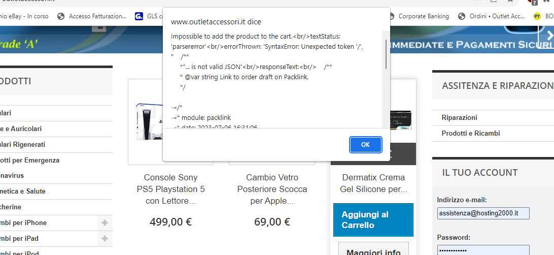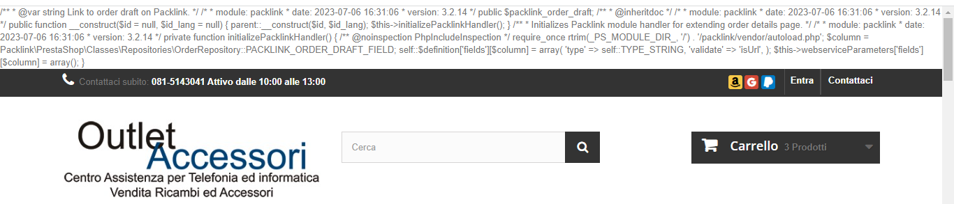 Problema dopo aver installato il modulo Packlink , escono codici errore nella home page e quando inserisco prodotti nel carrello