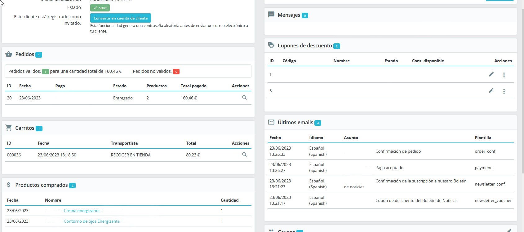 juanrojas Posted August 26, 2023 Share Posted August 26, 2023 hola, que version de prestashop usas? te pasa con todos los clientes? te pasa con todos los metodos de pago? con todos los transportistas? Link to comment Share on other sites More sharing options...