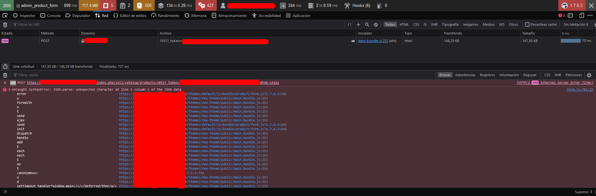 gusman126 Posted September 9, 2023 Share Posted September 9, 2023 Haz lo siguiente. Activa depuración, ve al producto, aprieta F12 para ver la consola del explorador, limpia esa pantalla, le das a guardar y en la pestaña Network o red, verás que hay un aviso en rojo, le das y preview, ahí verás que error da. Si al activar la depuración da errores recuerda que debes cambiar por FTP /config/defines... Link to comment Share on other sites More sharing options...