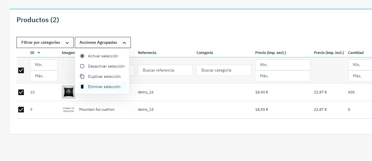 Cafe Posted October 7, 2023 Share Posted October 7, 2023 En Prestashop 8.1.1 cuando selecciono todos los productos: y elijo Eliminar selección en el menú de Acciones agrupadas me salta el error: Something went wrong... y sólo elimina uno o algunos, pero no todos, resultando bastante tedioso. Link to comment Share on other sites More sharing options...