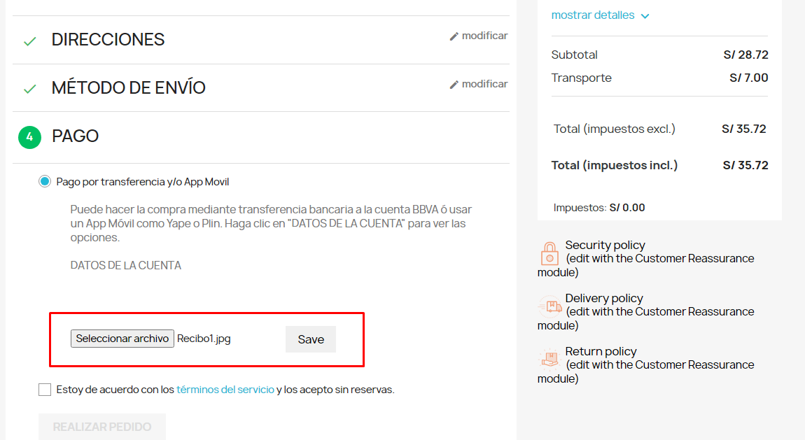 Lijaser Posted October 7, 2023 Share Posted October 7, 2023 Estimados que tal, Hace un par de semanas comencé con Prestashop 8.1.0 y quería agregar un botón o alguna función en el modulo de pago por transferencia bancaria para que el cliente suba la imagen de su voucher de la transferencia bancaria. Algo similar al botón de subir un archivo en el formulario de "CONTACTE CON NOSOTROS", que te sube imágenes y te las guarda en la carpeta 'uploads'. He estado siguiendo está página: https://penguin-arts.com/how-to-upload-images-in-custom-prestashop-form/ pero no se muy bien donde colocar, o si el código es funcional. Quería probar también que la imagen se suba directamente con el botón REALIZAR PEDIDO, pero no ubico bien donde revisar. Si me puedan dar alguna idea se los agradecería. Gracias Link to comment Share on other sites More sharing options...