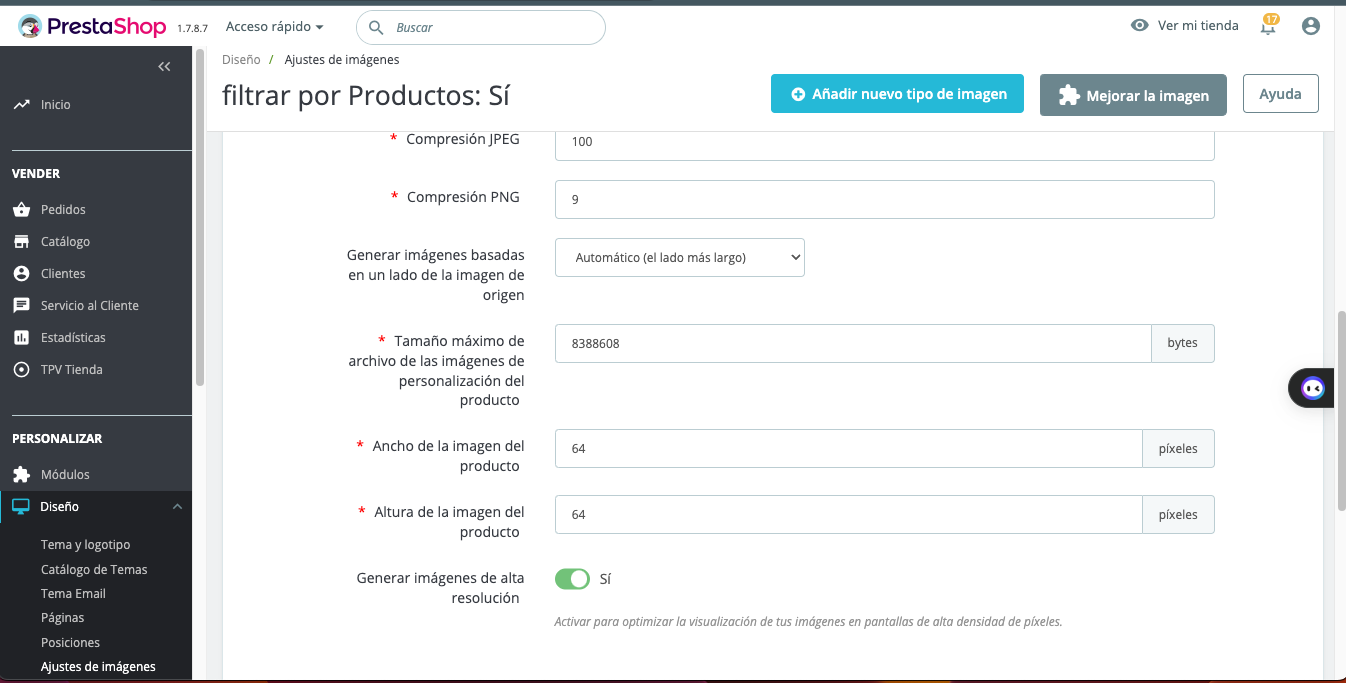 Nicolas Falla Posted October 26, 2023 Share Posted October 26, 2023 (edited) Hola mi problema es que cuando subo imagenes desde el backOffice usando estas medidas desde Photoshop: Me aparecen demasiado borrosas en dispositivos moviles aunque la foto tenga muy alta calidad, cosa que no pasa en Desktop (aunque en escritorio las imagenes de los productos del home se ven borrosas en todos casos) he intentado configurar los ajustes desde Diseño > Ajustes de imagenes, cambiando la compresión de JPEG, dejandola al 100% y dejando el check de generar imagenes de alta resolución. Quote Despues procedo a eliminar el cache de Prestashop en Rendimiento y el cache de mi telefono pero sin solución alguna siempre se ven las imagenes borrosas en telefono celular. Tambien he intentado doblar el tamaño de la imagen a 1600x1600 pero el resultado es peor. Este es el el producto de mi tienda, https://piccoli.com.co/ropa-nina/1038-3204-conjunto-puntos-beige.html#/57-talla_nino-2 Finalmente adjunto como se ve en movil. La version de mi prestashop es 1.7.8.7 quedo atento a sus comentarios gracias: Edited October 26, 2023 by Nicolas Falla imagen mal colocada (see edit history) Link to comment Share on other sites More sharing options...