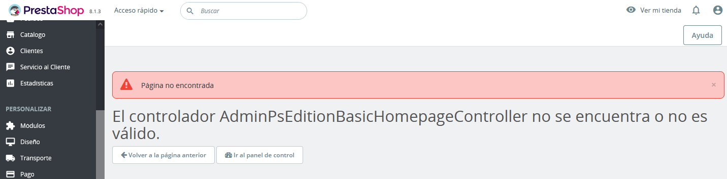 slaymesh Posted November 6, 2023 Share Posted November 6, 2023 Hi all, Long time i didn't post maybe few years i was away from Prestashop and here i am back . I have installed prestashop and upgraded from V8.1.1 to 8.2 and now when i log to admin area i have this message , Page not found : The controller AdminPsEditionBasicHomepageController is missing or invalid . Please check screenshot in the attachment. Thanks. Link to comment Share on other sites More sharing options...