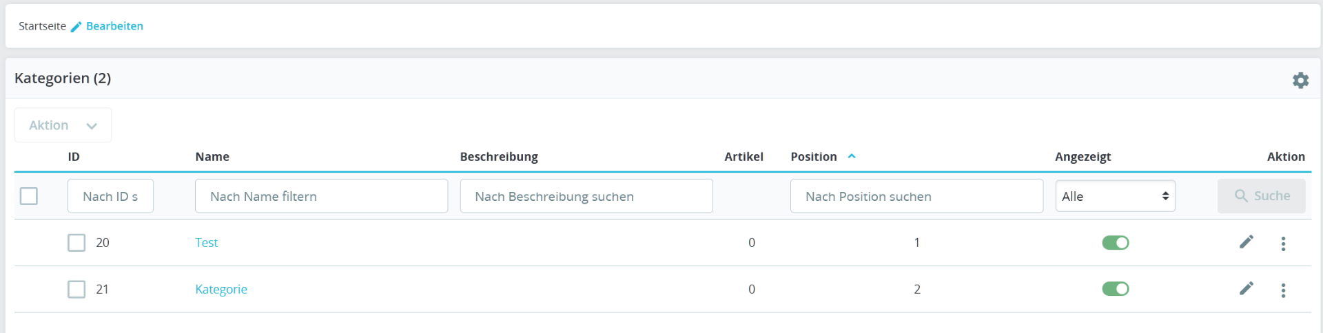 Finsterone Posted November 8, 2023 Author Share Posted November 8, 2023 22 minutes ago, juanrojas said: Hier sehen Sie die von Ihnen erstellten Kategorien http://schminkbuch.de/presta/Sitemap Wenn Sie möchten, dass sie oben angezeigt werden, müssen Sie dies über das Menümodul tun Das ist seltsam. Ich habe zwei Kategorien angelegt: Und im Menü-Modul wird auch angezeigt, dass diese zu sehen sein sollten: Link to comment Share on other sites More sharing options...