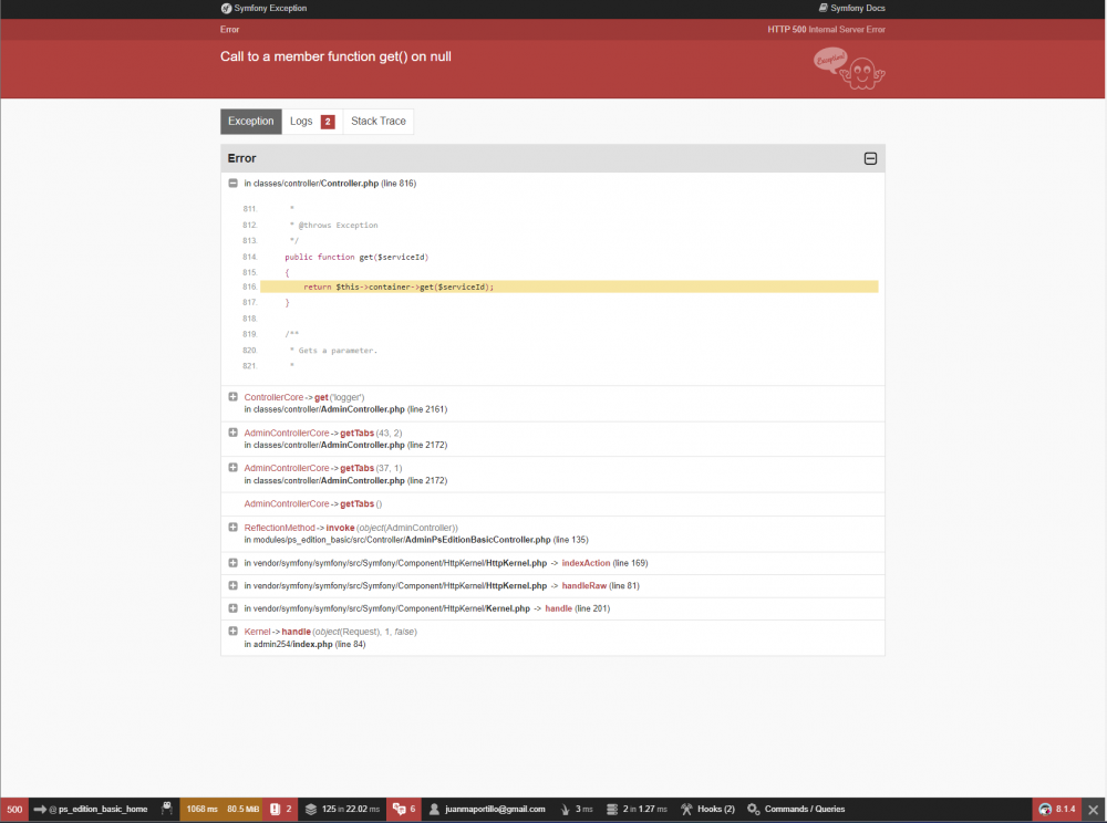 DrissDaif Posted November 7, 2023 Share Posted November 7, 2023 while I try to login into my admin panel I get this error saying: Call to a member function get() on null in classes/controller/Controller.php (line 816) * * @throws Exception */ public function get($serviceId) { return $this->container->get($serviceId); } /** * Gets a parameter. * NOTE: I hosted my prestashop site in Hostinger server. Link to comment Share on other sites More sharing options...