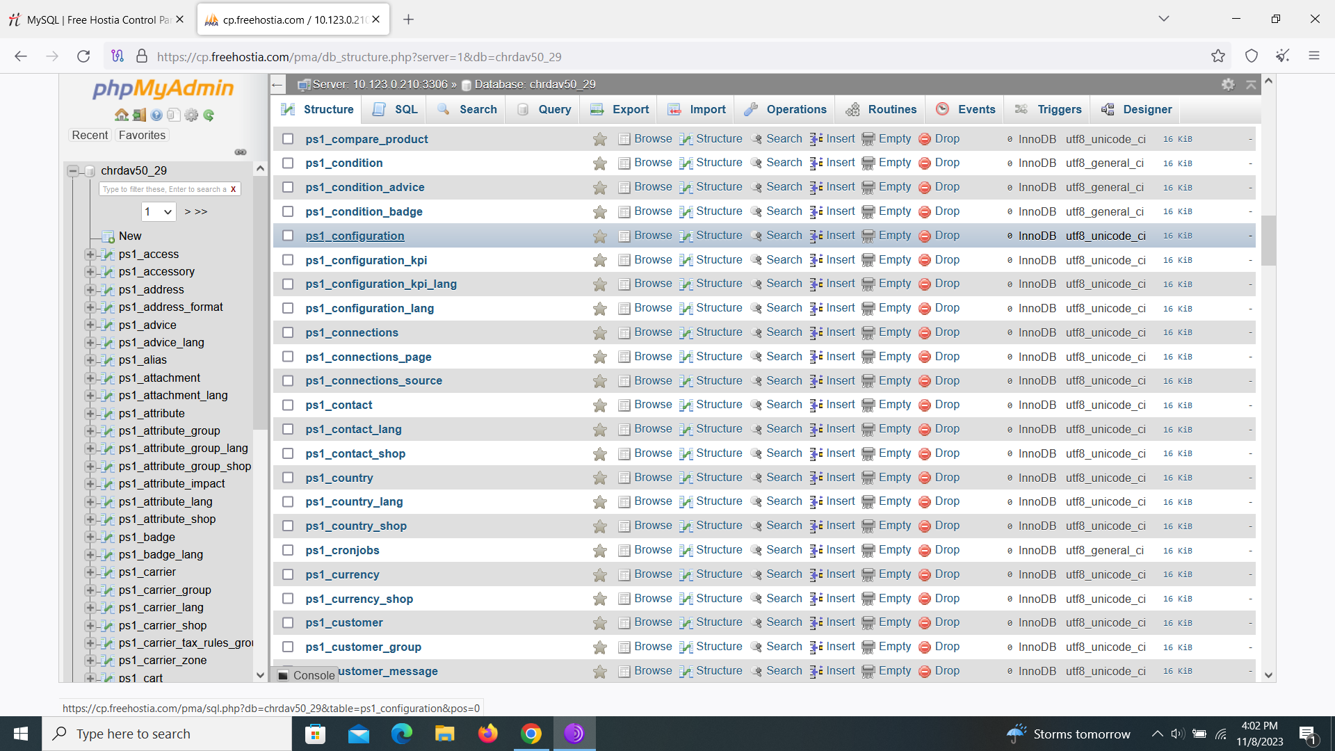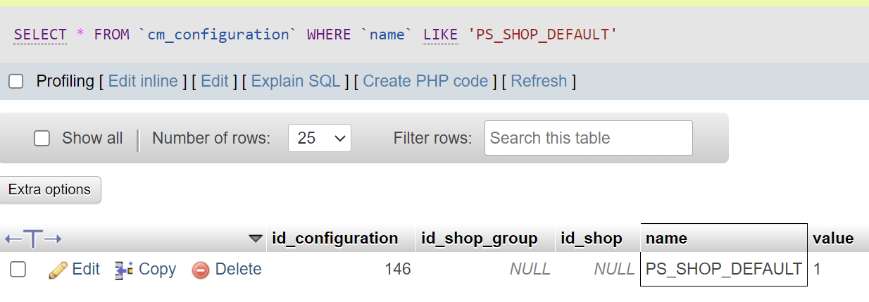 master0000 Posted November 8, 2023 Author Share Posted November 8, 2023 encontre ps_configuration pero no veo PS_SHOP_DEFAULT no lo veo ni en mi phpmyadmin database ni en ps_configuration Link to comment Share on other sites More sharing options...