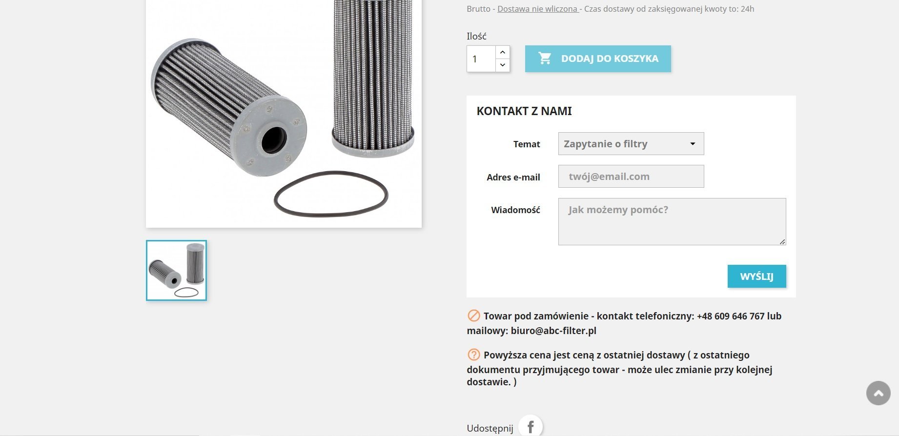 Mam problem dodałem {widget name="contactform"} formularz kontaktowy do strony produktu. Wyświetla się w momencie gdy ilość produktu jest 0. Klient ma możliwość wtedy wysłania zapytania o dostępności i wycenie filtrów ( sklep z filtrami do maszyn ). Wszystko jest ok tylko po wciśnięciu wyślij nie wysyła mi maila tak jak w formularzu kontaktowym z informacją że wiadomość została wysłana. Natomiast przekierowywuje mnie do pustego koszyka zakupowego. Jak zmienić aby wysłał wiadomość tak jak to działa w formularzu kontaktowym.