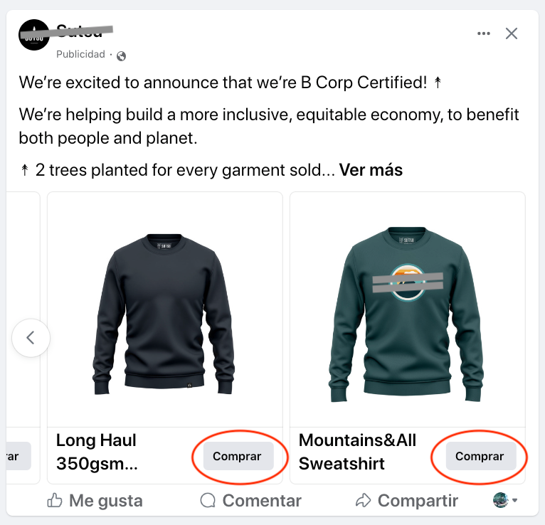 Publicar artículos en Facebook y que aparezca el botón "Comprar"