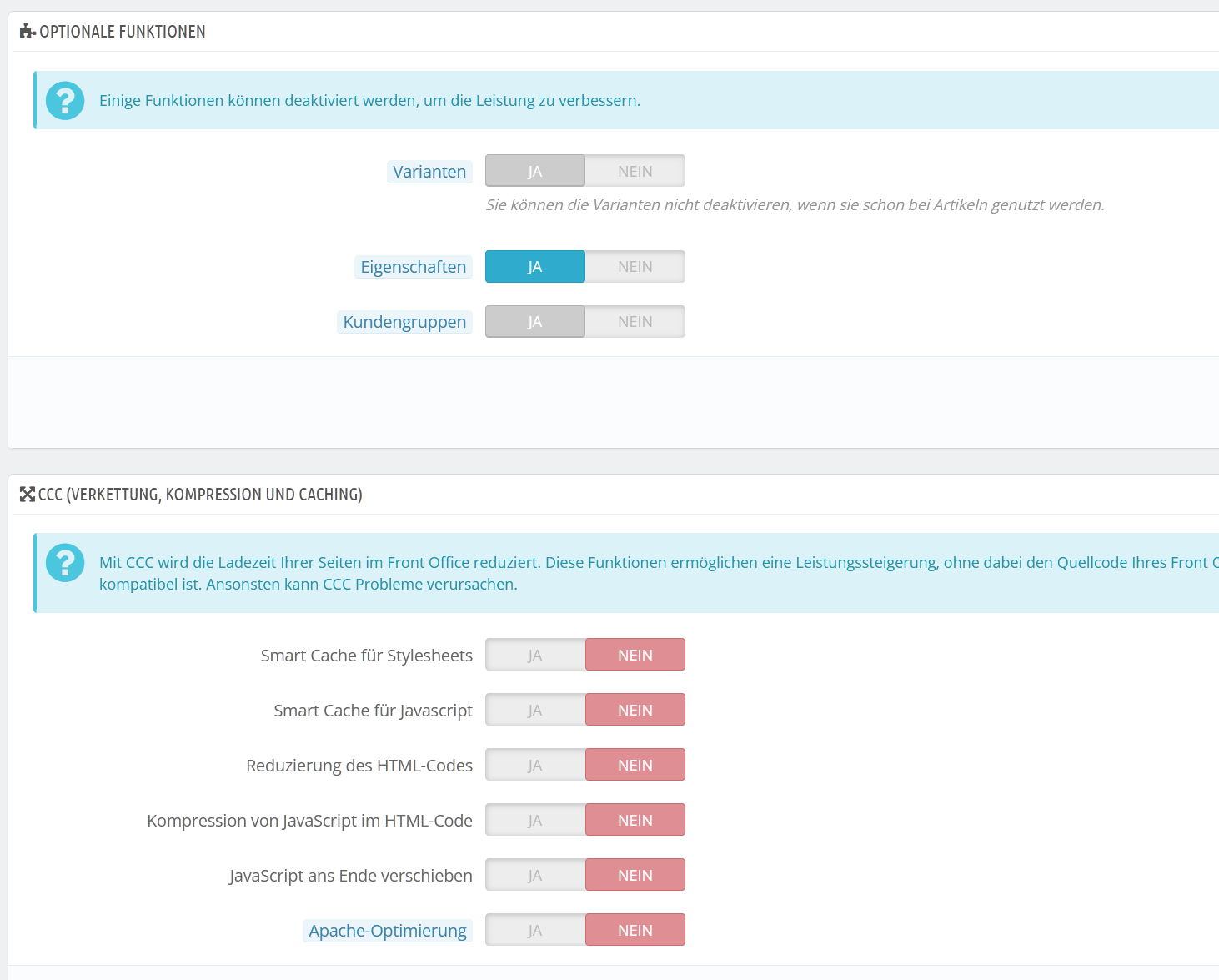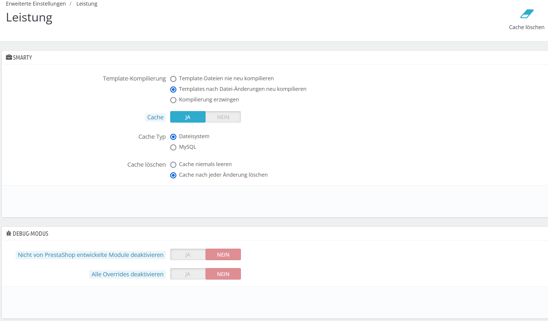 Finsterone Posted January 23, 2024 Author Share Posted January 23, 2024 21 minutes ago, rictools said: Ich glaube "den Cache überhaupt nicht zu nutzen" geht gar nicht, das Löschen der Caches und ggf. auch direkt des Cache-Ordners per PHP ist oft die Lösung. Das von dir beschriebene Verhalten läßt sich ja auch nur so erklären, dass deine Einstellungen nicht wirken und sich der Shop aus dem Cache bedient. Ansonsten könnte ich mir das nur so erklären, dass du zwei Shops hast und deine Einstellungen in einem anderen Shop vornimmst ... Das war vielleicht ein bisschen unkonkret ausgedrückt: Ich habe jetzt "Cache löschen" rechts oben unter Leistung angeklickt, alle Zahlweisen wieder aktiviert, aber leider keine Änderung. Die restlichen Einstellungen auf der Seite sehen so aus: Link to comment Share on other sites More sharing options...